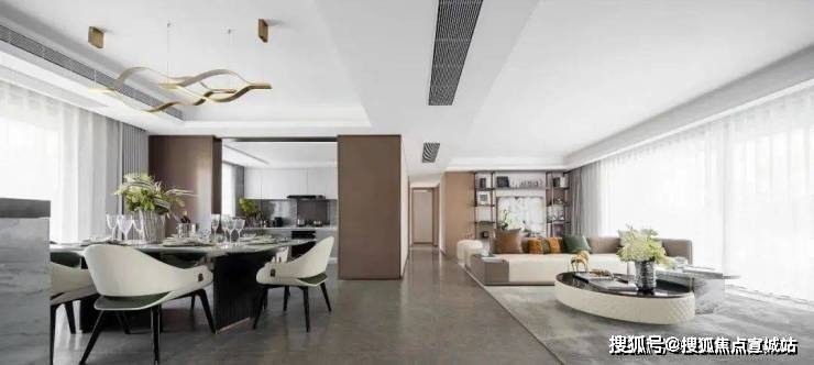 不仅实现了餐厅、客厅美好融合,无论处在哪个区域,都有着超强的尺度感.全家人一起看春晚、孩子邀请同学们一起来开Party都能满足.