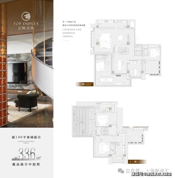 苏州河畔「云境·长风」在售336-341㎡顶层空中复墅,总价2500万左右!