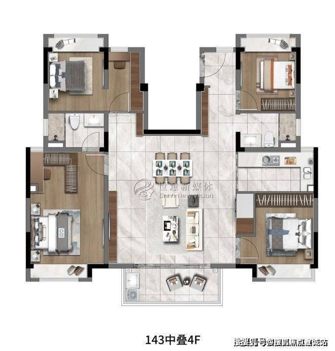 平层:143㎡户型总价约 560 万起。