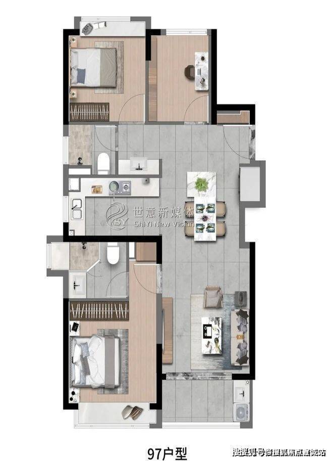 高层建面约97㎡3房2厅2卫