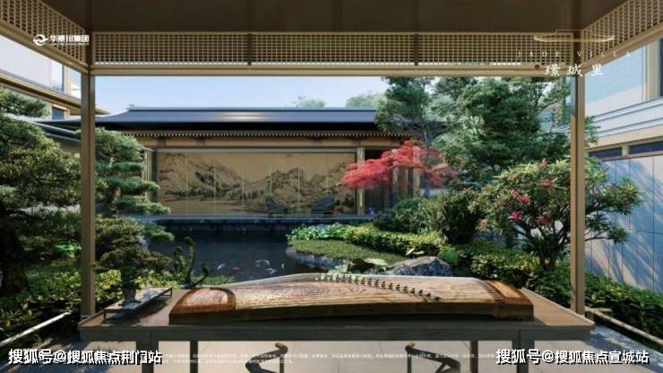 璟珹里摒弃平铺直叙,参考名画“自然天成”氛围,将坡地、池塘、小径、石桥等传统元素,融入园林中,并自然点缀唐画中竹、石、林、花等要素,营造景中有画、画中有景的生活画卷。