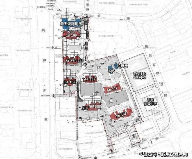 而北侧靠近南山路一侧还规划一幢最高6层的养老设施用房。在小区南北两侧的中华新路和南山路分别设有机动车出入口。