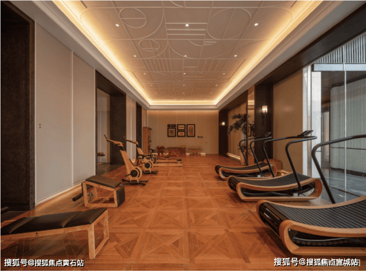 传承百年工艺手工打造拼花地板,隐匿式氛围光模拟塞纳河畔落日,器材选择上,为业主定制的沃特罗伦(WaterRower)品牌健身房, 全部采用珍贵的全木质健身器材,触感温润细腻