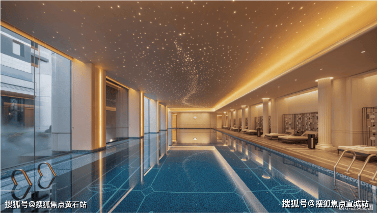 奢朗尺度,打造满水式流体游泳体验,泳池以奢材定制,高品质美学致敬城市。