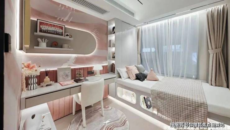 值得一提的是,市面上大部分100㎡横厅户型多少会牺牲北向房间的尺度.而项目北向房间面宽约2.8米,搭配飘窗的设计,完全可以满足卧室的功能使用.