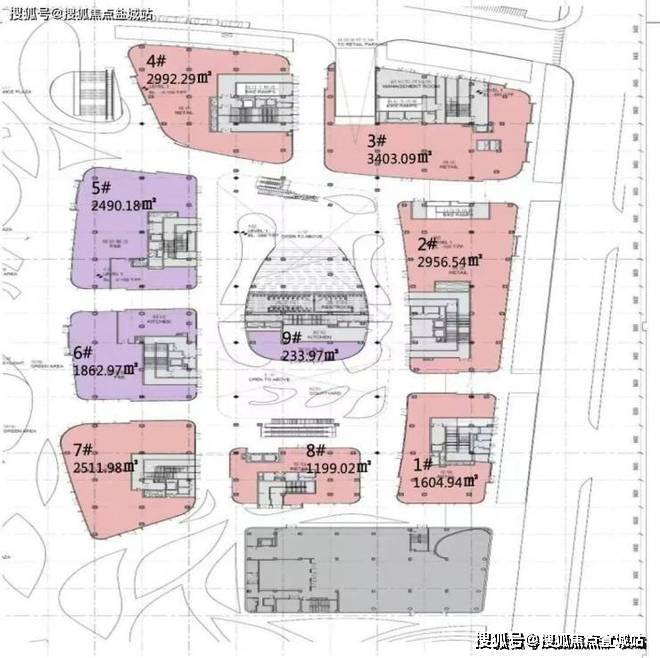 总部云端办公41层(3至43层)约9.86万平方米,单层约2500-2800平方米。