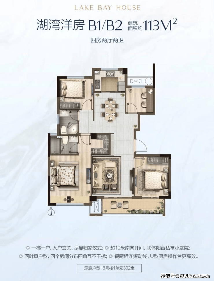 翠悦半岛洋房共集中了103㎡、107㎡三房,113㎡、121㎡四房四种户型,其中两种四房户型均属于动线短、布局更严谨的四叶草户型,四个房间分布四个角落互不干扰,并且均采用大面宽设计,三开间总宽达十余米;得益于主卧走入式衣柜设计,餐客厅被分为两个相对独立的空间,就餐与会客互不干扰,居家交友乐趣升级.