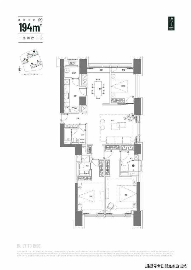 建面约194㎡三房两厅两卫