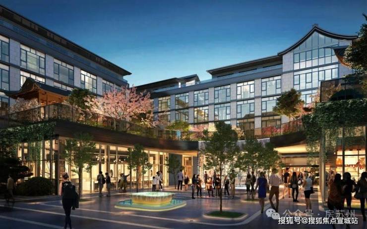 【南门·兴业坊】建筑延续姑苏粉墙黛瓦天际线,融合当代通透玻璃界面,匠心工艺打造回字建筑组团;新中式园林景观意承苏州园林底蕴,演绎“泉林气+雅致感+艺术性”,串联出【一回三叠五景】独特的归家仪式感。