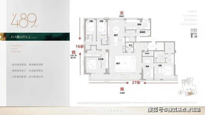 489㎡天际大平层:26 米南向面宽,270° 观景窗