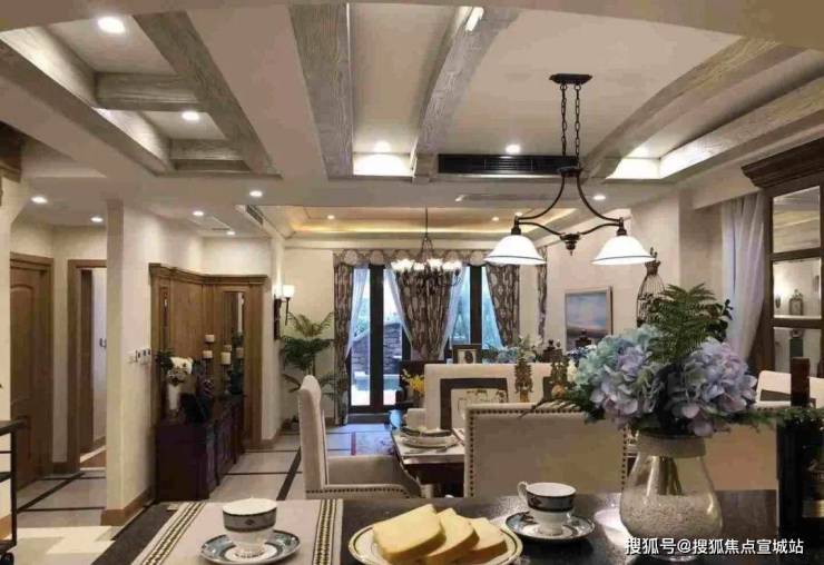 外立面采用文化石和手工打磨的stucco艺术涂料,烟囱、山花、铁艺栏杆、木质葡萄架,配合高低错落的彩瓦屋顶,空间层次优美。同时社区配备泳池会所、网球场等休闲娱乐设施,业主在闲暇之余,约上三五好友在社区会所就能小聚一番。