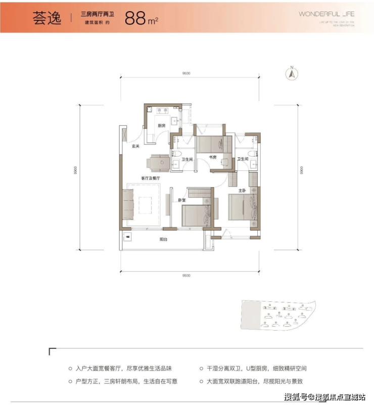约89-120㎡全能精致户型,毛坯&精装的双重选择,3/4房2厅2卫的户型设计,匹配成长型家庭,聚合沪上品质菁英青年。
