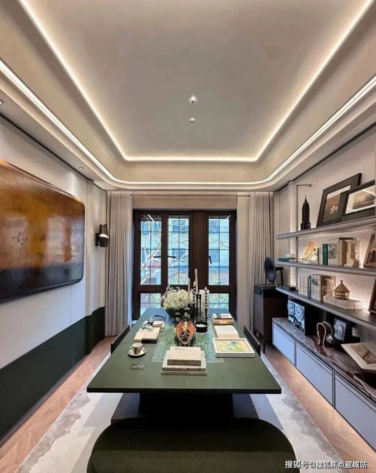 一楼面向庭院全景大玻璃落地窗真正意义上实现借景入室,是空间互融更是诗意盛放,客餐厅等空间集中于南侧于风景的相拥中宽享知味时光,至享生活浪漫。