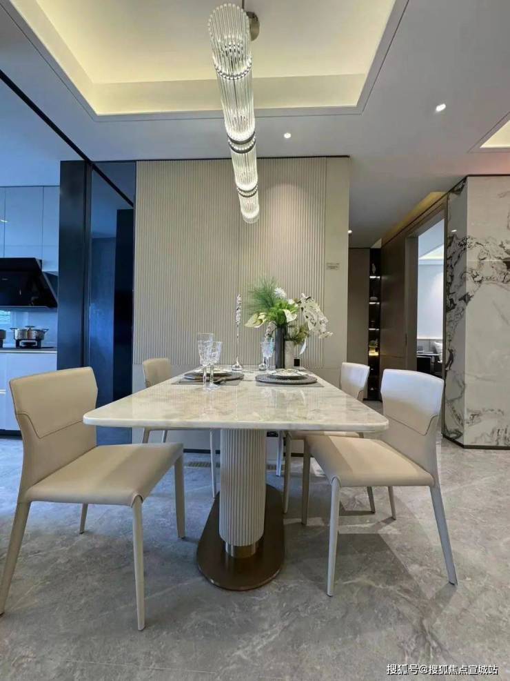 而人行线路则由星级酒店式的入户大堂进入,接着便是6S会所环绕的下沉式水景庭院,约7米高磅礴大气的水景墙配合乌桕林和原石、浮桥交错的地面水景,若是傍晚归家,还能欣赏倒映在水中的点点星光,可谓满满的奢雅意境和尊贵仪式感!