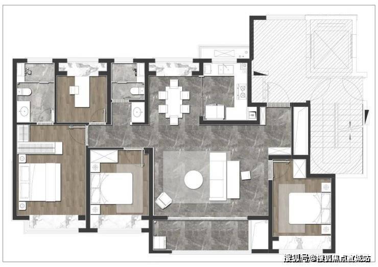 建面约136㎡的4房2厅2卫更是有豪宅大平层的空间感和功能划分。