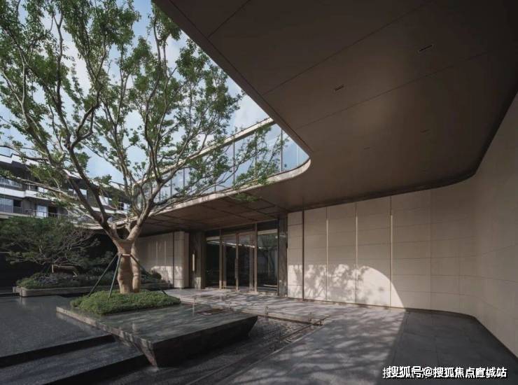 东方意境融于品质用材:石材迎宾、高品质植被、格栅意境