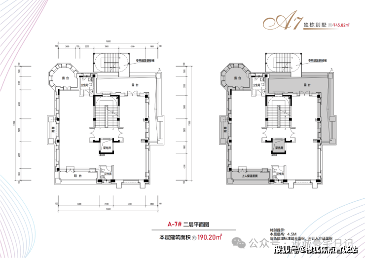布局:地上三层(4.5米层高)+地下一层(6.2米层高)+900㎡花园