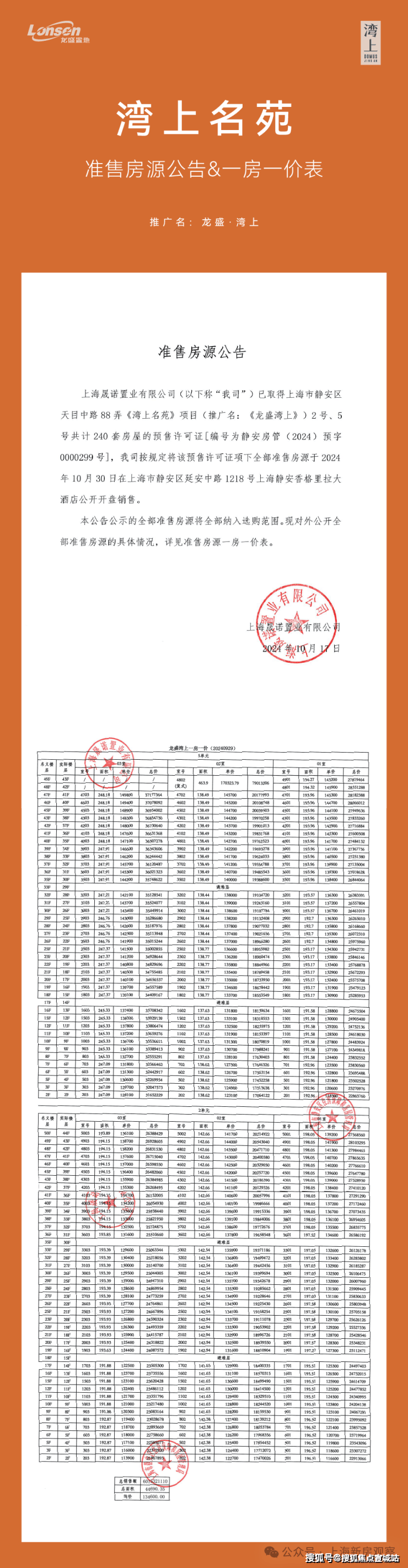 静安内环内「龙盛·湾上」少量建面约194-248㎡3-4房,均价13.46万/㎡!
