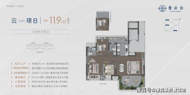 119㎡以上户型实现约100%使用率,赠送空中庭院面积达11-65㎡(最大约54㎡);