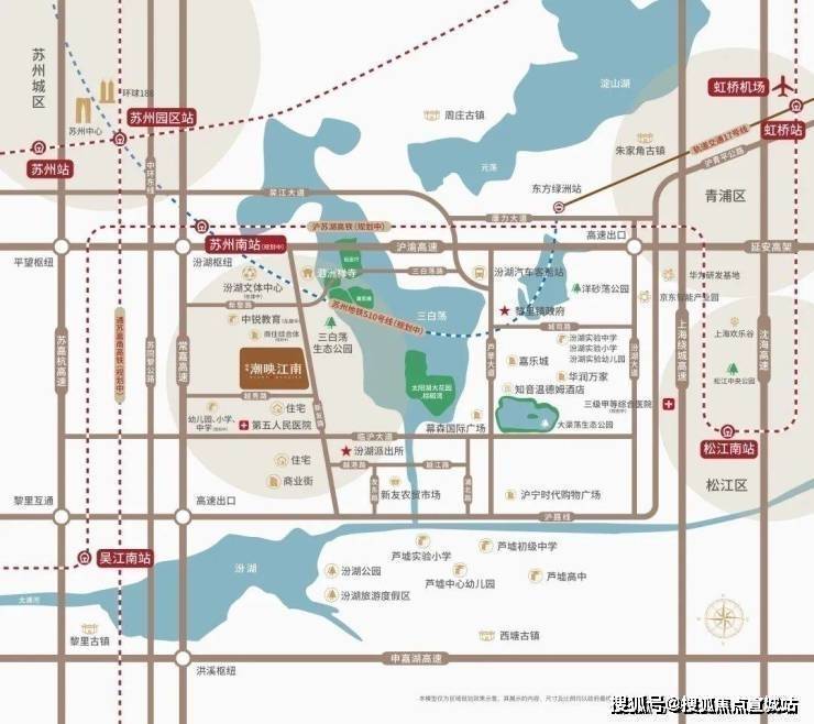 距离高铁苏州南站直线距离约3km,沪苏湖高铁向东经过松江南站直达虹桥枢纽