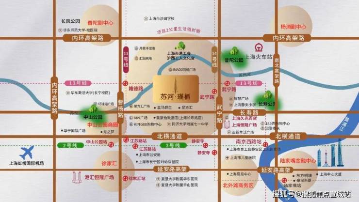 轨道交通:距离 14 号线武宁路地铁站 400 米,周边还有 13 号线、11 号线,形成三轨交汇的格局。