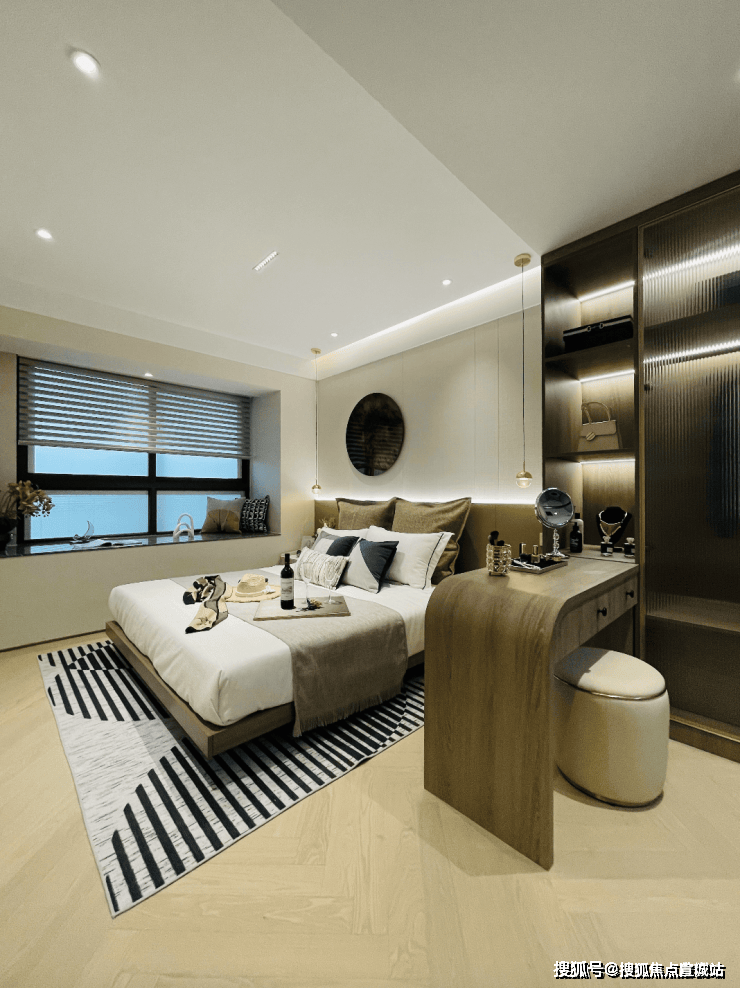 双套房设计,主卧带卫生间+衣帽间,次卧带衣帽间+飘窗,让两代家庭都能拥有自己的私密空间。