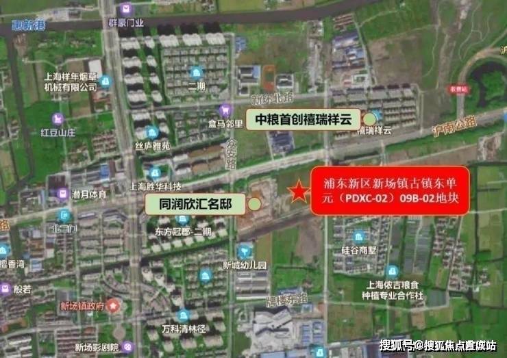 2022年6月1日,上海同润投资(集团)有限公司全资子公司上海垄新房地产开发有限公司以总价14.55亿元竞得浦东新区新场镇古镇东单元(PDXC-02)09B-02地块,楼面价22274元/㎡,溢价率8.49%,房地联动价48000元/㎡。地块西侧为同润在售新盘「同润欣汇名邸」,北侧一路之隔为「中粮首创禧瑞祥云」