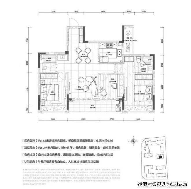 【B2】:南朝向,3室2厅2卫,建筑面积128㎡,260万/套。
