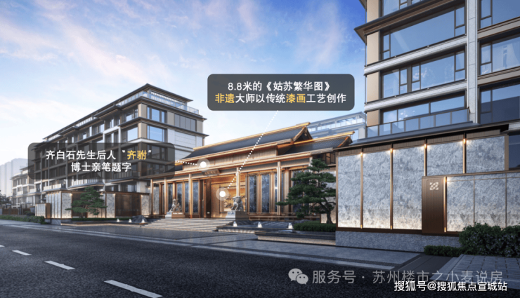 ※恢弘大门照壁:于宅邸间珍藏国匠瑰宝,建发特邀中国工艺美术大师、国家级非遗传承人张来喜先生,以传统漆画工艺,亲手创作长达8.8米的《姑苏繁华图》,将姑苏盛景凝铸为传家级的艺术典藏。