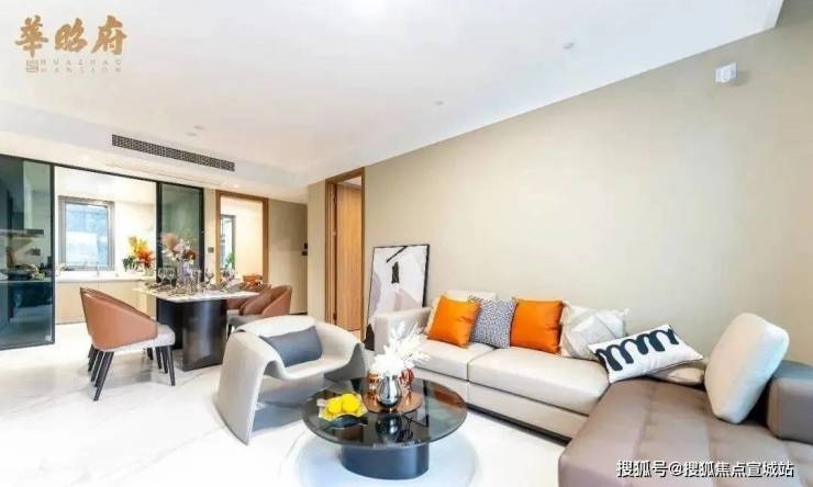 华昭府售楼处电话:400-877-8334(营销中心预约热线) 室内地面摒弃了常用的瓷砖,选择了更加耐磨、更有质感的岩板,这种奢侈的做法成本直接翻了几倍。