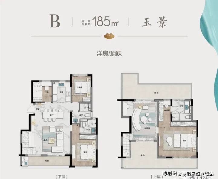建面约185㎡上叠户型分上下两层,下层南向6.5米的超大阳台,可以将整个客厅变成一座光之宫殿。大平层中常见的LDK客餐厨一体化也被放在了上叠户型中,让整个下层空间更加通透。而在上层,整层搭载了专属于主人的巨型主卧套房+起居室,这是通常只有在千万级豪宅才能看到的奢侈尺度。