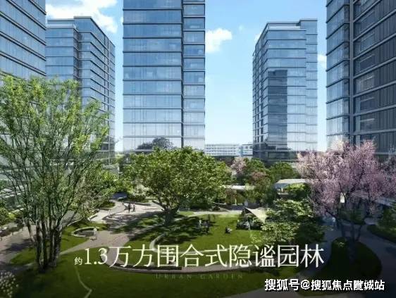 七幢建筑借鉴中国古典园林的精髓,最大楼间距达到了63米,使得每栋楼都能享受到270°的开阔视野,仿佛是一座座隐匿于花园中的岛屿。为了与景观相呼应,园区立面采用“水晶天幕”设计,线条纤细,使建筑宛如天空中垂下的纯净湖面。
