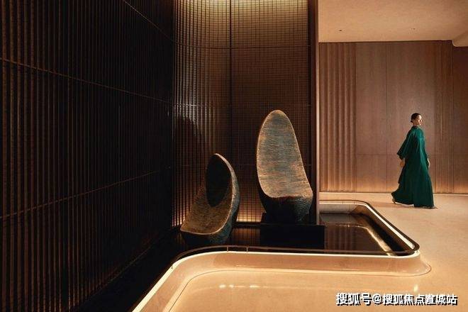 比如,花费大量成本,请当代艺术家韩洪波创作倚石听泉雕塑,水浪花翻动卷起的形态,给归家动线增加一处山水之境。