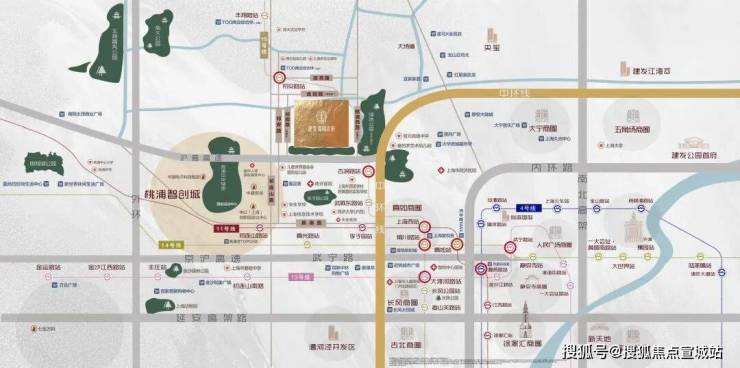 26号线:中环超级大环线(规划中),嫁接15号线古浪路站以及11号线祁连山路,通车之后从本项目可达中环各个板块商圈,未来项目会实现三轨环绕轨道交通路网。
