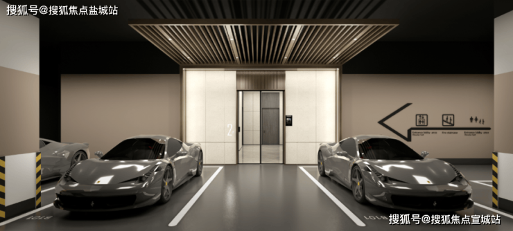 车行入口也设计了保安门岗,业主驾车入库安全有保障!车库地下入户大堂也是设计感十足!