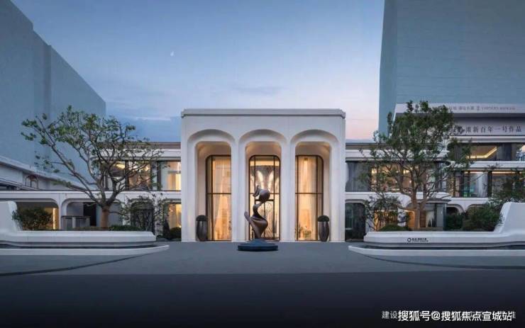 绿城·潮鸣外滩建筑共鸣在地文化,汲取上海拱券建筑艺术的经典——礼查饭店孔雀厅,结合路易斯·康金贝尔美术馆“金贝尔拱”形态,以三心拱创新打造封面门廊。