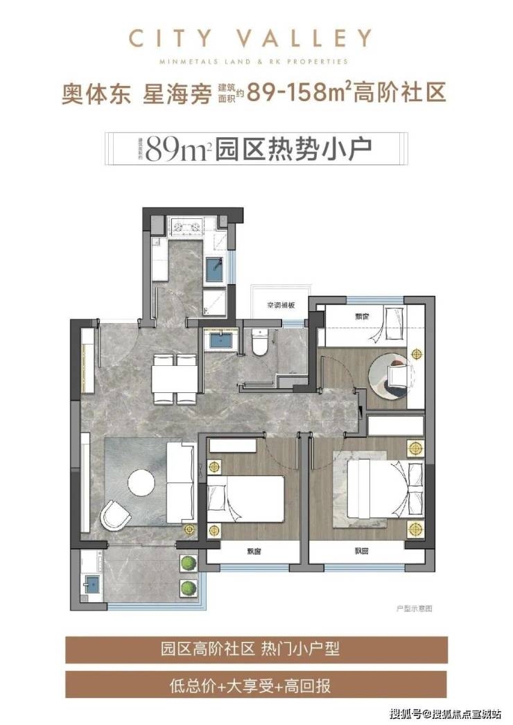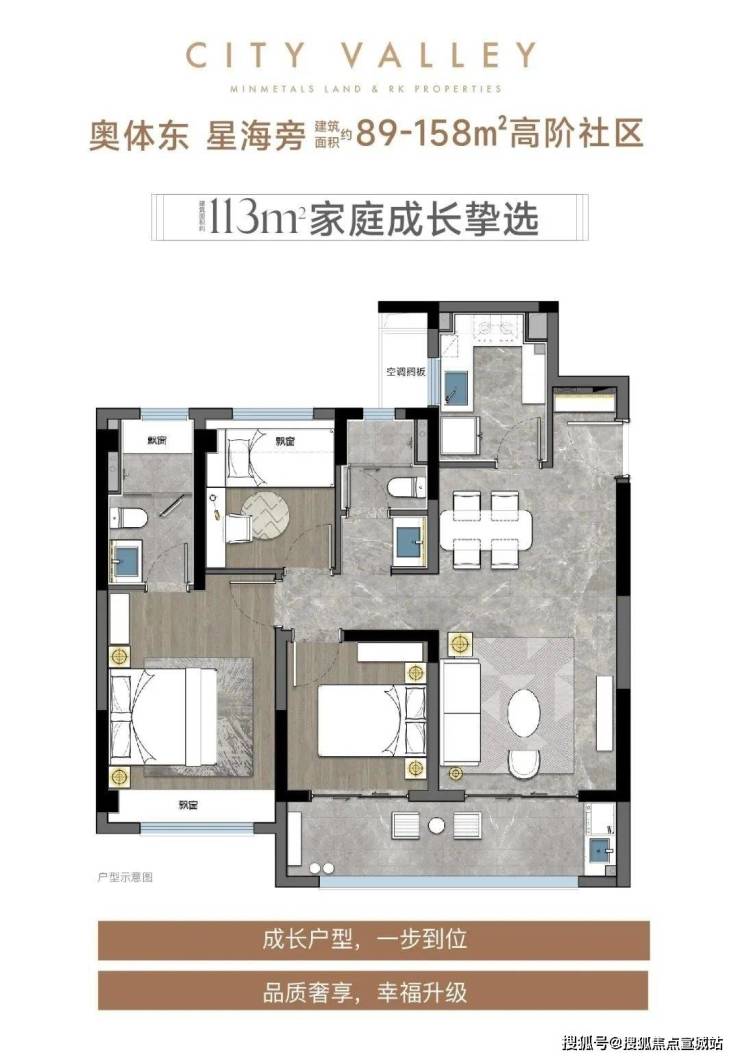 重点是这款真的是园区仅剩的罕见小户,总价更亲民,年轻人能够得上,十分值得冲。建面约89㎡户型示意图建面约113㎡三房