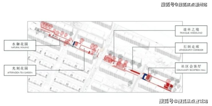 归家活力轴线:打破传统的轴线布局,约300米季相花园轴贯穿东西,约200米的邻里街区轴连通南北。以错落跃动的五线谱形式展开,连接社区活力纽带,以组合错位的方式形成邻里花园。