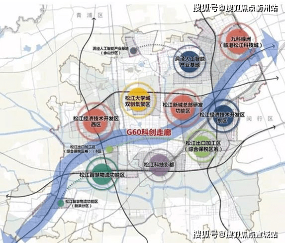 泗泾周边有四大优质规划环绕,分别是虹桥主城区、G60科创走廊起点、漕河泾开发区和松江南站TOD。