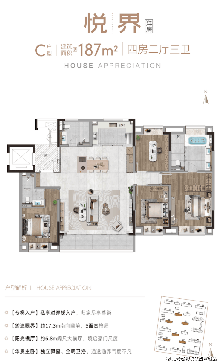 高层:20-26层,两梯两户或两梯三户,得房率约78%