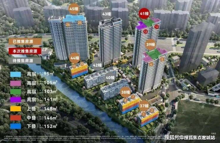 建筑面积约105㎡三房,进阶改善绝版“三阳台”户型,主力总价段约700万级,部分房源总价约650万级。