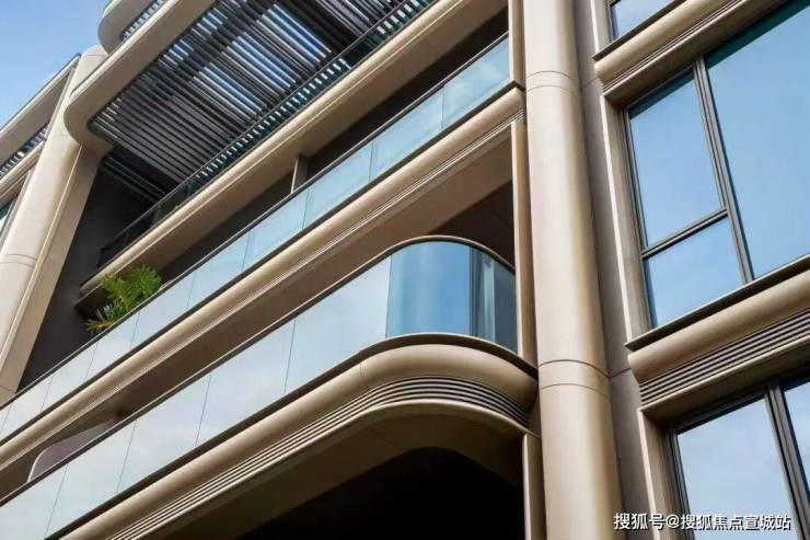 建筑风格以现代简约为主,主体运用大面玻璃、铝板、铝线条、涂料和石材为辅等描绘“金色画框”,顶部勾勒超流线动感“云冠”造型。