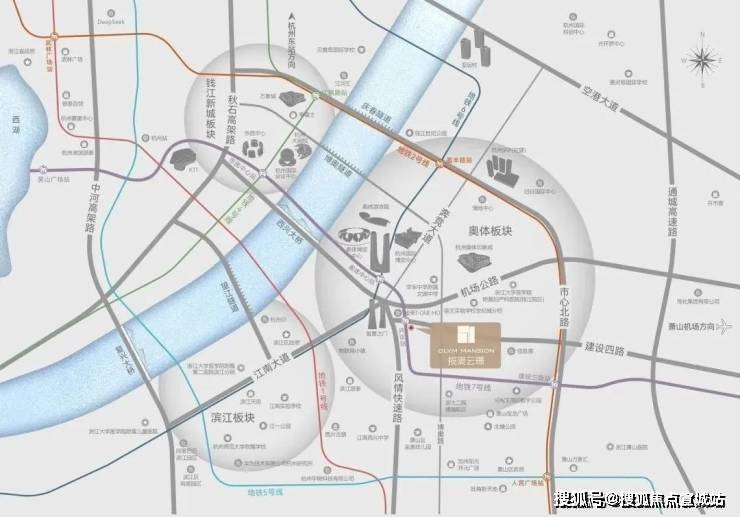 周边大小“莲花碗”、T-ONEMO(在建)、奥体中心、奥体印象城、滨江银泰城、杭州SKP(在建)等地标建筑星罗棋布,构建起一个资源高度聚集的城市封面区域。同时,项目往西约200米便是重要交通干道风情大道,依托三横两纵的便捷路网,能够快速通达滨江区政府、万象城、来福士、市民中心等城市关键节点,交通优势显著。
