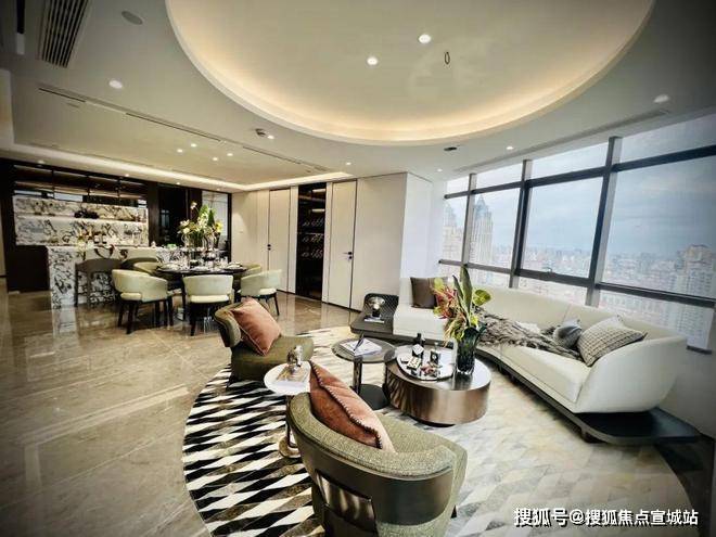 所在楼层,高耸入云。躺在床上即可饱览上海“一江一河”的经典地标,睁开眼睛即可感受到内环老城厢的闹忙、烟火气……在家就能看陆家嘴三件套的日出日落、苏河湾上工作游船的来往如织。