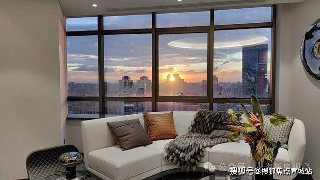 客厅270°采光面,配置弧形沙发,窗前可见上海经典三件套;