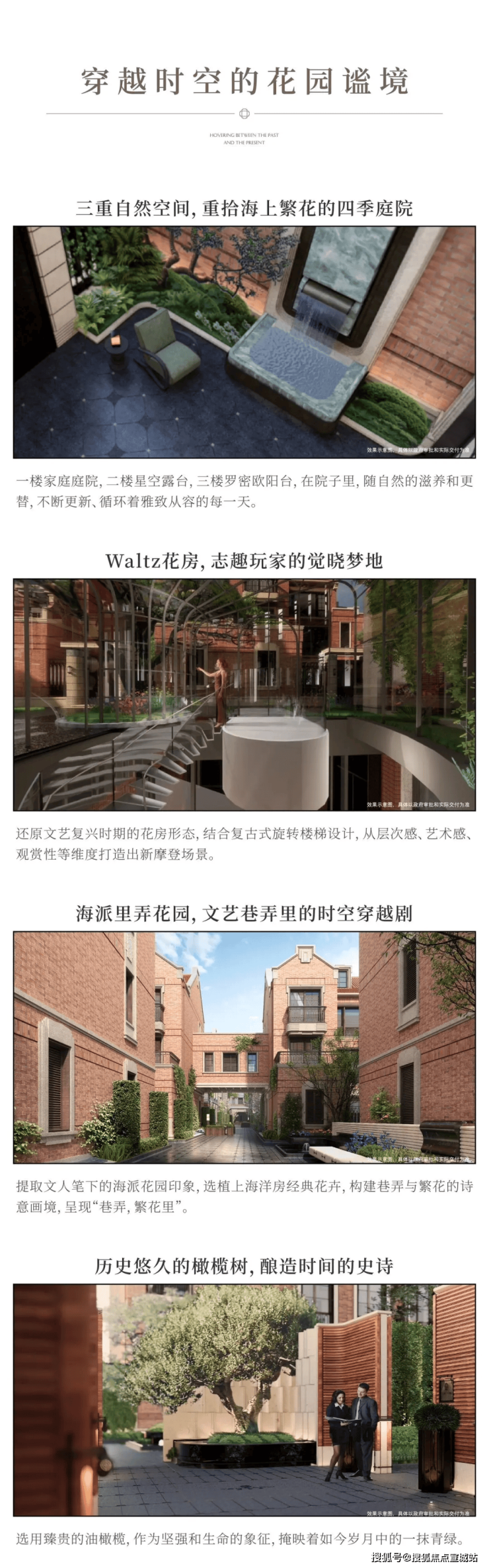 ②新复古元素深入看细节,你会发现项目高颜值的6大新复古元素.包括Artdeco复古式窗套、现代石材抹角、典雅山花样式、墀头屋檐一体化设计、经典仿木百叶、石库门专属地砖符号等,用先锋表达回应在地文化.