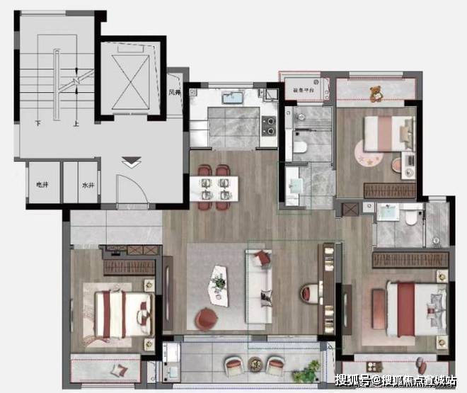 【建面124㎡4居】420.0-440.0万-分布于3号楼 1 ,2梯2户,层高3.00米,总楼层17F