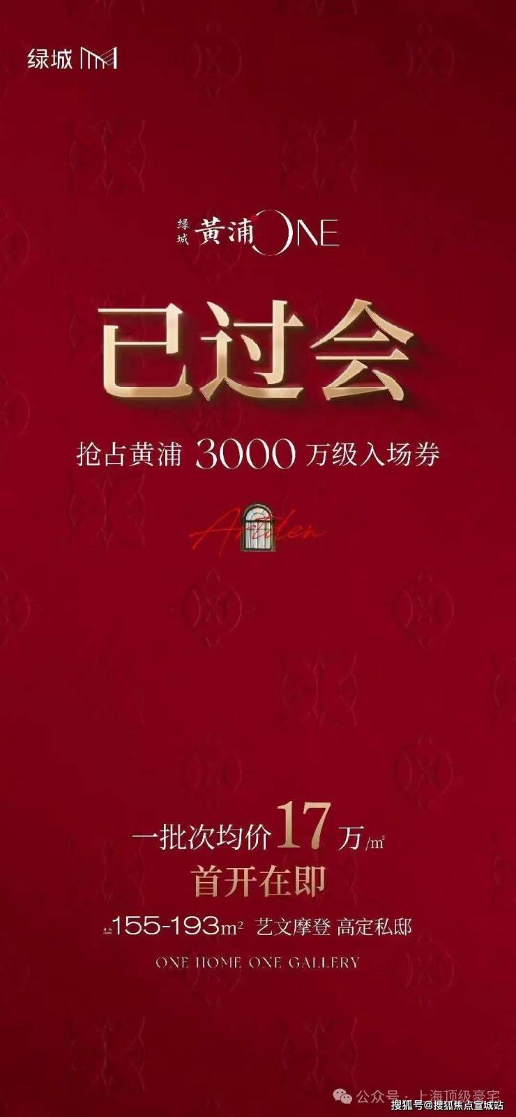 均价17万/㎡!黄浦区绿城高定奢宅【绿城黄浦ONE】推出建面约155-193㎡3-4房!即将入市,已开放预约!