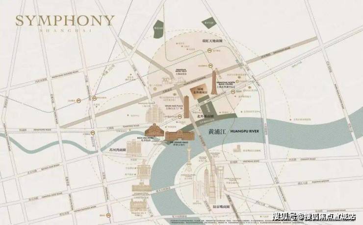 项目直线距离黄浦江岸仅约900余米(来源百度地图),坐揽北外滩中央公园生态绿肺(规划)及百年外滩人文画卷,是外滩新百年时代无可争议的封面作品.