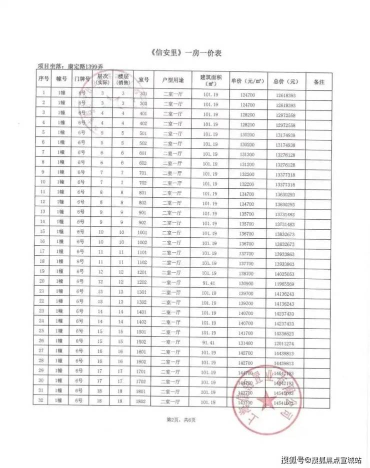 别墅一房一价表: